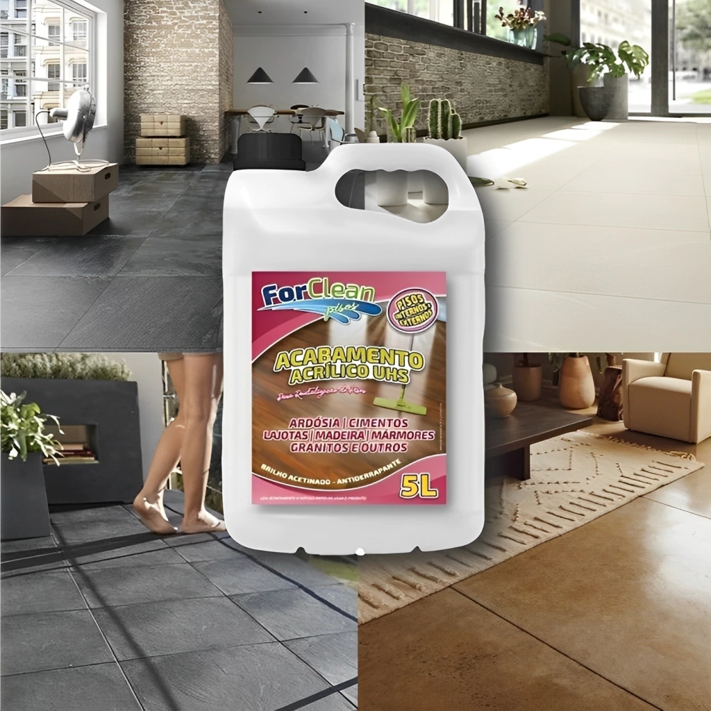 A Resina Acrílica UHS For Clean é a solução perfeita para quem busca proteção e brilho em pisos e superfícies, tanto internas quanto externas. Com sua fórmula de alta resistência, esta resina se destaca pela versatilidade, podendo ser utilizada em diversos tipos de materiais, como: